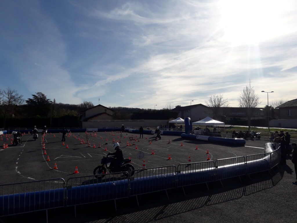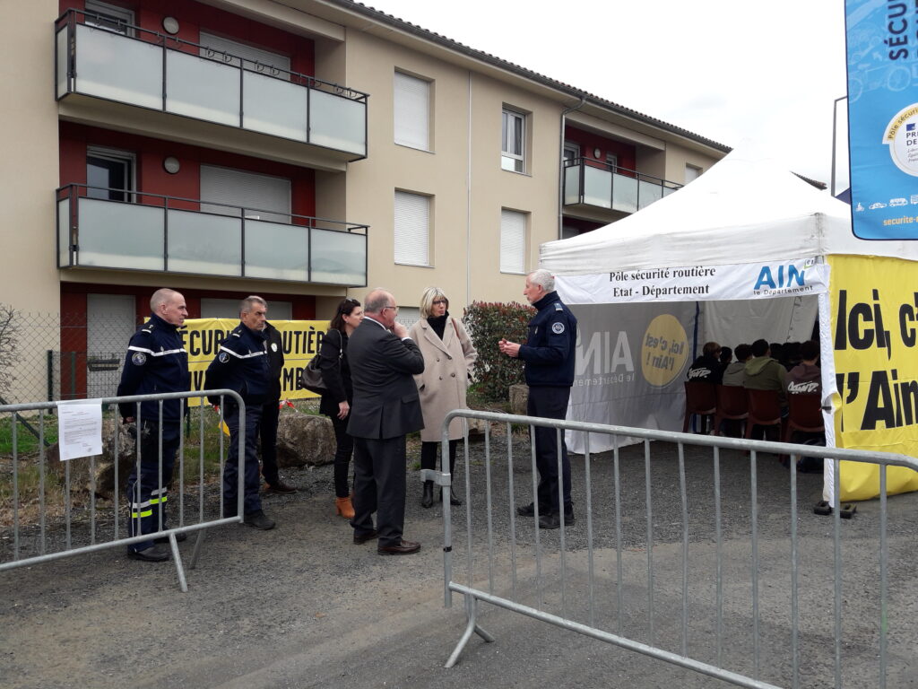 Mme la sous-préfète Virginie GUERIN-ROBINET et M. Guy BILLOUDET, vice-président du Département en charge des routes et des mobilités, ont salué l’évènement qui a permis à 500 collégiens des classes de 3ème de Reyrieux et des environs de suivre une formation inédite, théorique et pratique.
