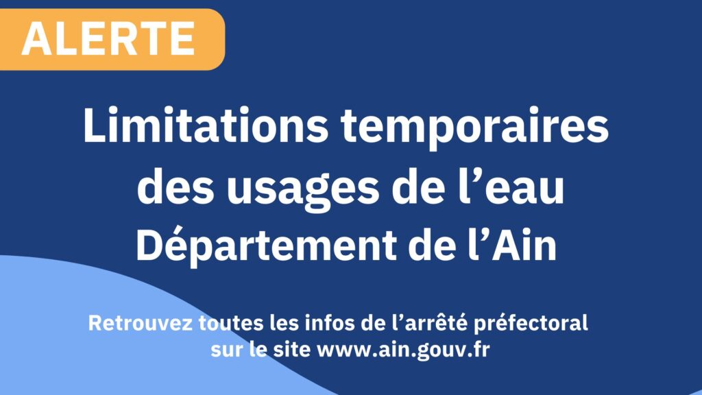 Restrictions temporaires d’usage de l’eau Alerte sécheresse La préfecture de l’Ain a placé notre secteur en situation d’alerte sécheresse.Des limitations temporaires d’usage de l’eau sont mises en place afin de préserver la ressource. Pour les particuliers : Arrosage : Pelouses, massifs fleuris, plantes en pots : autorisé uniquement de 18 h à 11 h (goutte-à-goutte autorisé […]