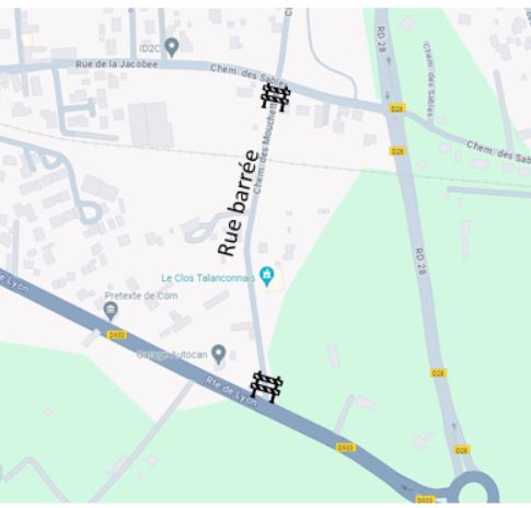 En raison de la fermeture à la circulation dans ce secteur à partir du 18/11/2024