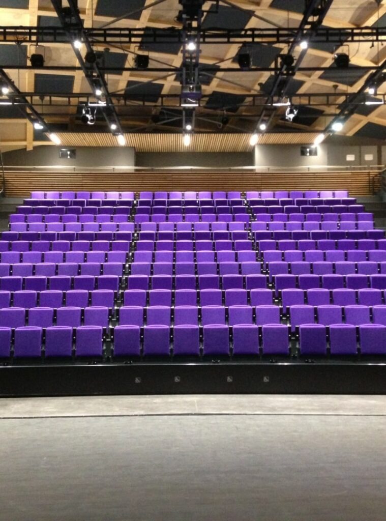 Une salle de spectacle équipée en son et lumière comprenant :